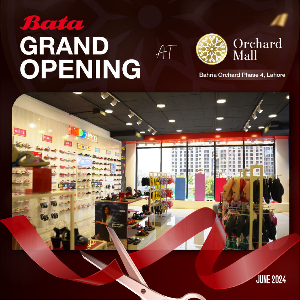 The wait has ended! The Bata store is being inaugurated at Orchard Mall in Bahria Orchard, Lahore. Known for its stylish and durable footwear, Bata is ready to provide a greater level of comfort and fashion during your shopping experience. In honor of the occasion, ensure to make use of the special 10% discount offered on all products. Now is the ideal moment to update your shoe assortment and make use of discounted prices!